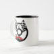 Roter Rennwagen und Flaggen Zweifarbige Tasse