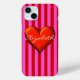 Roter rote Streifen Metallisches Herzmonogramm Case-Mate iPhone Hülle