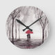 Roter Schirm Liebe Ehepaar rustikal romantisch Vin Runde Wanduhr