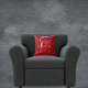 Auf diesem auffälligen Kissen stehen hübsche Wirbel in Rot, Schwarz und Weiß - perfekt für Ihre Wohngestaltung.