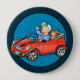 Kinder, denen Liebeautos die Liebe sind, die diesen Knopf trägt. Das rote Auto wird auf einen blauen Kreis gesetzt und der Entwurf ist niedlich und ausführlich. Dieses Bild wird durch Illustrator amerikanischen Nationalstandard Collijn© gemacht und ist das geschützte Copyright