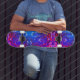 Karo aus diesem cool aussehenden Skateboardmuster, das aus einem meiner Originalgemälde entstand. Sie würden krass mit diesem hier herumfahren sehen. Es wäre toll im Skateboard Park oder auf einem Rundgang durch die Strandfronten.