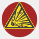 Roter Aufkleber mit gelben und schwarzen Sprengzeichen.
