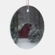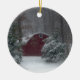 Roter Stall im Schnee Keramik Ornament
