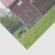 Roter Stall mit zwei weißen Silhouetten inmitten eines Gelben Blume-Feldfachpapiers