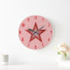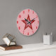 Modernes Design mit einem "leuchtenden" roten und weißen Stern auf einem hellrosa Hintergrund. Wall Uhr mit individualisierbarem Design für Sie, um mit Ihrem eigenen Text, Bildern und Ideen zu personalisieren. Bitte beachten Sie, dass es sich um ein gedrucktes Bild handelt, das mit Originalfotos und Digitaltechnik erstellt wurde, es nicht glänzt oder echte Glitzern enthält.