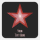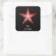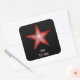Roter Stern "Dein Text" viereckiger Aufkleber schw