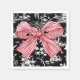 Diese eleganten Servietten sind die perfekte Touch für jede klassische Babydusche. Der weiche, rot-weiße gestreifte Bogen wird auf einem schwarzen Chinoiserie-Hintergrund platziert.