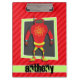 Roter und grüner Roboter; Rote Streifen mit Scarle Klemmbrett