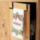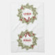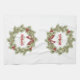 Dieses Design verfügt über ein rotes und grünes Küchentuch, mit einem Weihnachtskranz, perfekt für das Backen, eine großartige Herberge Sake Geschenk ein monogramm erstes, grünes Blatt, mit heiligen Beeren, eine rustikale Wasserfarbe, festliche Winter, Weihnachten Design.