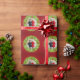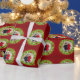 Roter und grüner Weihnachtskranz wiederholt ein Fo Geschenkpapier