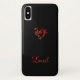 Personalisiertes Weihnachtsrotes und schwarzes Musikclef-Herz auf einem schwarzen iPhone X roten musikalischen dreifachen Bassschlüsselherzen Falles A auf grundlegendem Schwarzem mit Ihrem Namens- oder kundenspezifischen Text, wenn farbiger Schriftart zusammengebracht wird. Ein großes Geschenk für Ihren Lieblingsmusiker oder Musikfreund. Füllen Sie Ihren Namen an der Aufforderung aus, um zu personifizieren und Sie irgendwie besonders anzufertigen mögen Sie.