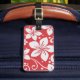 Beschmutzen Sie Ihr Gepäck über vom Anschluss mit diesem auffallenden Gepäckanhänger. Die Front des Umbaus ist in einem Roten erfolgt und weißes hawaiisches Blumenmuster und die Rückseite ist im festen Rot mit kundenspezifischem weißem Text erfolgt. Personifizieren Sie den Text zum Anzug Ihr Bedarf. Zusammenpassende Reiseprodukte sind verfügbar.