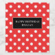 Roter und weißer Polka Punkt mit personalisiertem Weinetikett mit schwarzem Namen.