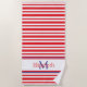 Roter und weißer Streifen mit Navy Blue Monogram Strandtuch