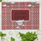 Fröhliche rot-weiße Tartan Design Küchenhandtuch mit Heißluftballon. Text ist anpassbar. Teil der Plethora of Patterns Collection.