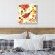 © Lisa Audit / Wild Apple. Ein schöner roter Vogel in einem Blumengarten. Die Blume sind in Rot-, Orange- und Gelbtönen gehalten, die Touchs sind weiß.