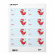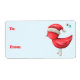 Mit diesen niedlichen und einfachen Geschenketiketten für Weihnachten fügen Sie Ihrer Geschenkverpackung in diesem Jahr eine Touch Farbe hinzu. Die Abbildung zeigt einen roten Vogel mit einem Hut des Weihnachtsmanns auf einem hellblauen Hintergrund. Illustriert und entworfen von Patricia Alvarez.
