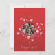 Eine großartige Möglichkeit, Weihnachten oder Neujahr zu feiern, ist, Ihre Wünsche mit diesem eleganten Design von Schneeflocken auf rotem Hintergrund zu senden. Fügen Sie Ihr Foto hinzu, ändern Sie Ihre Nachricht und senden Sie die Karte an die, die Sie Liebe!