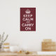 Dunkelwein roter Hintergrund mit leichterem rosa Design in einer modernen Version des klassischen "Keep Calm and Carry On" Designs.
