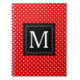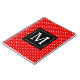 Rote und weiße Fünfzigerjahre inspirierten Polkapunktmuster mit Schwarzes ausgebogtem Quadrat in der Mitte für Ihr kundengerechtes Monogramm.