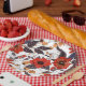 Rotes Anemongold delikates lila Blattwerk Pappteller