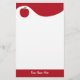 Briefpapier, das einen roten und weißen Farbentwurf kennzeichnen und ein roter Apfel oben verlassen. Personifizieren Sie mit Ihrem Namen in der Mitte des Weiß unten.