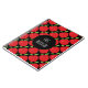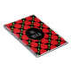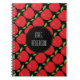 Dieses NotizbuchAusrüstungsbeschreibungen ein Lehrerthema mit einem roten Apfelmuster als dem Hintergrund und ein schwarzer Kreis, der kundenspezifischen Text für den Lehrernamen anbietet.