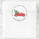 Rotes Auto mit Weihnachtsbaum-Rücksendeadresse Runder Aufkleber