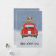 Rotes Auto mit Weihnachtsgeschenken Weihnachtskart Feiertagskarte