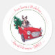 Rotes Auto und Weihnachtsbaum & Happy Hund Runder Aufkleber