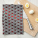 Rotes Bild unter grauen Tellern, rechteckige Forme Geschirrtuch