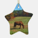 Rotes braunes Pferd, Bäume fallen, blauer Himmel Keramikornament