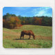 Rotes braunes Pferd, Bäume fallen, blauer Himmel Mousepad