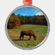 Rotes braunes Pferd, Bäume fallen, blauer Himmel Ornament Aus Metall