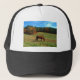 Rotes braunes Pferd, Bäume fallen, blauer Himmel Truckerkappe