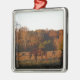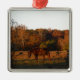 Rotes braunes Pferd, Herbstwald. Ornament Aus Metall