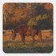 Rotes braunes Pferd, Herbstwald. Quadratischer Aufkleber