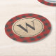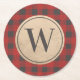 Rotes Buffalo Kariert Monogramm Runder Pappuntersetzer