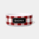 Stilvolle moderne Haustierschale mit rustikalem Rot-Weiß-Büffel-Karo-Muster und klassischem Namensmonogramm. Personalisieren Sie es mit dem Namen Ihres Haustieres oder einem anderen Text. Klicken Sie auf Anpassen, um eine beliebige Hintergrundfarbe auszuwählen, Schriftart und Farben zu ändern, eigene Fotos hinzuzufügen und ein Design zu erstellen!