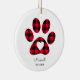 Rotes Büffel-Karo-Pfotenabdruck Weißes Herz Keramik Ornament