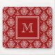 Rotes Damast-Muster 1 mit Monogramm Mousepad