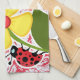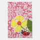 Rotes Damast-Muster; Marienkäfer Geschirrtuch