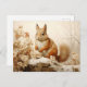 Dies ist eine sehr niedliche Postkarte, die ein rotes Eichhörnchen darstellt, das im Schnee in einer schönen Winterlandschaft sitzt. Neben dem Waldtier sind einige weiße Blume. Die Farbtöne sind Vintag und fügen der Kunst eine Touch Nostalgie und Süße hinzu. Die perfekte Karte für alle, die den Winterurlaub Lieben!
