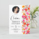 Rotes Foto mit orangefarbenem Untergrund Sweet 16 Einladung