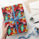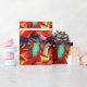 Ideal für den Valentinstag mit originalem Kunstdesign aus Aquarellmalerei von Sacha Grossel Art of rote Rose Blume in nahem, makro-Stil. Dieses botanische Thema hat intensive, helle farbenfrohe Designs von Rot, Gelb und Blau Blütenfarben vor einem grünen Hintergrund. Diese Blumenkunst, abstrakt in der Farbenintensität, bringt Gefühle von Liebe und Romantik hervor und ist für Blume- und Farbliebhaber überall.