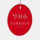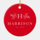 Ihre erste, von festlichen Zweigen umgeben, zusammen mit dem Nachnamen und dem Jahr oder dem Datum der Heirat in weiß vor einem roten Hintergrund (Farbe kann durch Klicken auf "anpassen"). Mit einem Foto auf der Rückseite ist dieses Ornament perfekt für das frisch verheiratete Paar.
