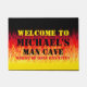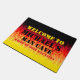 Dieses Dooemat hat ein Design von roten frisierte Auto-Flammen, wie klassische frisierte Auto-Autos oder Muskelwagen-Racing-Flammen. Man kann das Design größer oder kleiner machen, aber man muss das Design ein wenig verschieben. Personalisieren Sie dies mit Ihrem eigenen Namen und Sprichwort oder löschen Sie die Buchstaben, um eine Flamme nur Design. Großartiges Geburtstagsgeschenk für die menschliche Höhle eines jeden Typ.