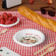 Rotes frohe Weihnachten, blumengeschmücktes Foto Pappteller