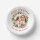 Roter froher Weihnachten und Blumenkranz Feiertag Foto Papierteller. Personalisieren Sie mit Ihrem eigenen Foto und Text.